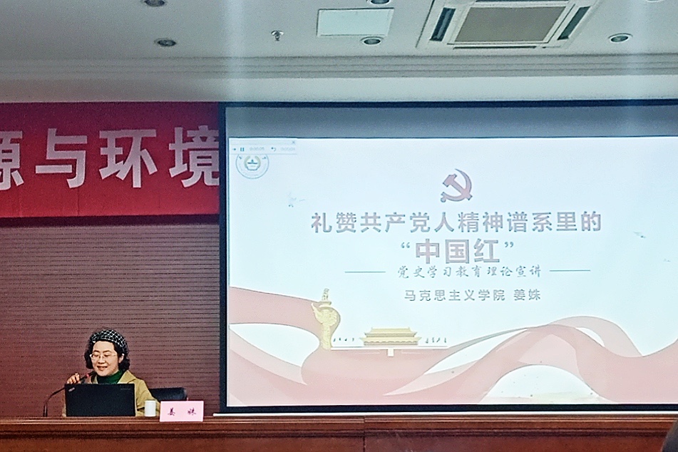 宣讲团成员、马克思主义学院姜姝副教授为资环师生作题为《礼赞共产党人精神谱系里的“中国红”》的党史学习教育宣讲报告。日本a片
