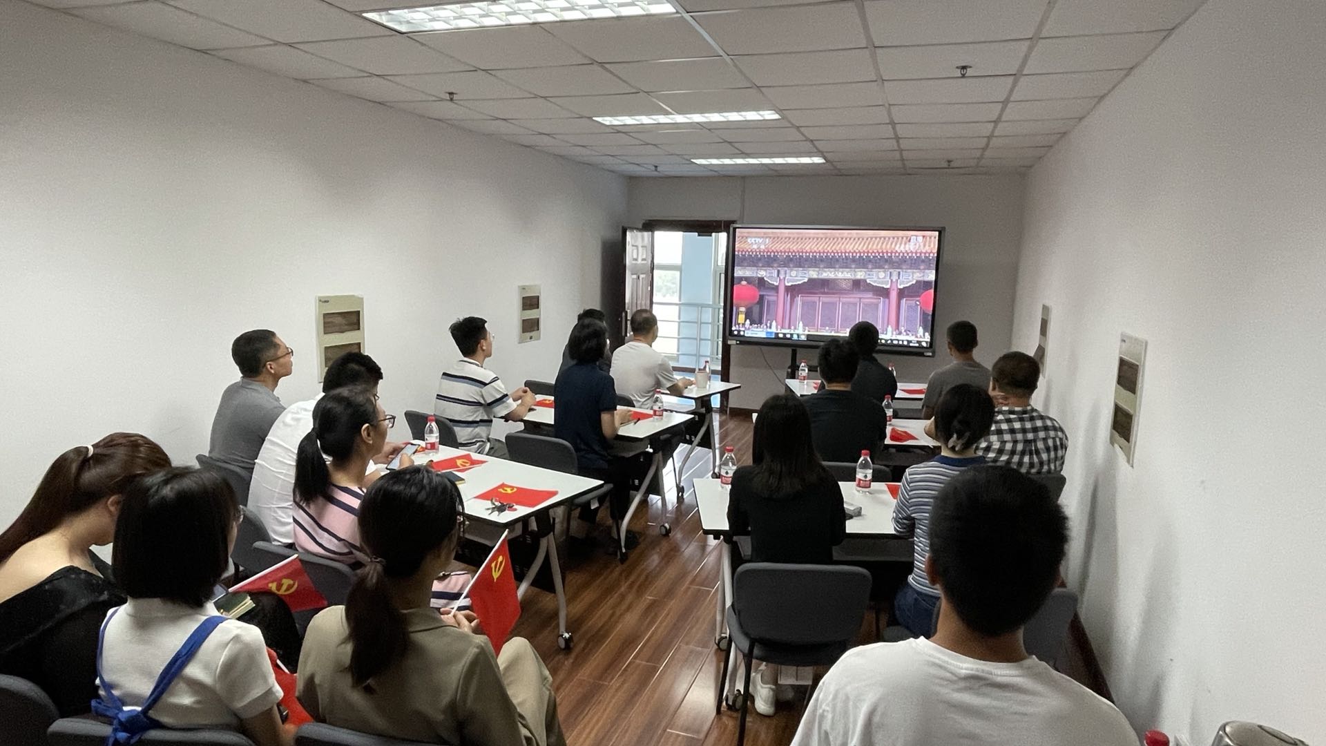 党委班子成员、各支部书记及学生支部代表在资环楼B201会议室通过视频直播形式,收看“庆祝中国共产党成立100周年大会”庆典盛况。