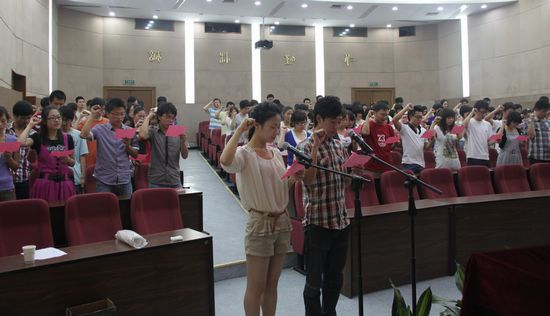 接着全体毕业生宣誓,在领誓人的带领下,充满激情与感激的话语充斥着整个报告厅。随后校组织部部长王春春宣读了“优秀毕业生”、“优秀毕业论文”表彰决定,由校领导、校友及院领导一起为毕业生们颁发优秀毕业生证书和毕业证书并合影留念。