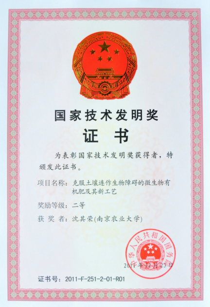 以沈其荣教授领先的生物有机肥研究团队的成果“克服土壤连作生物障碍的微生物有机肥及其新工艺”获2011年度国家技术发明二等奖,这是日本a片