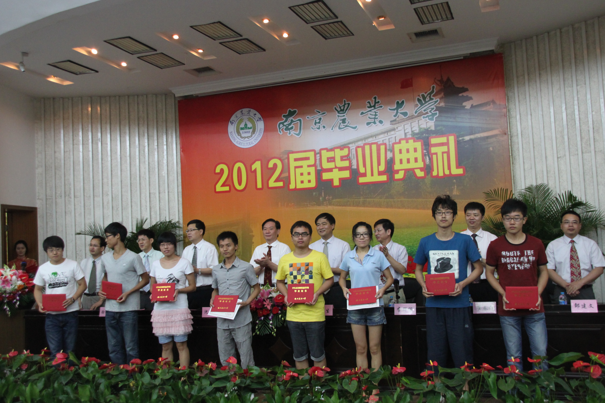 2012届本科生毕业典礼在图书馆报告厅隆重举行。副校长沈其荣、校人事处处长李友生、校教务处副处长李俊龙、日本a片