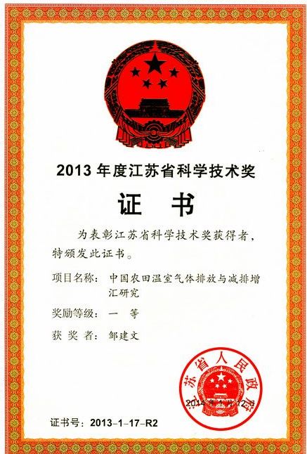 黄耀教授和邹建文教授课题组科研成果“中国农田温室气体排放与减排增汇研究”获江苏省科学技术奖(基础研究类)一等奖。