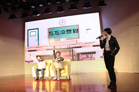 话剧表演《万万没想到》的精彩表演赢得观众的阵阵掌声,结尾的观众竞猜体现了“一千个观众有一千个哈姆雷特”理念,也引出分享会的第二个篇章,创新实践篇。
