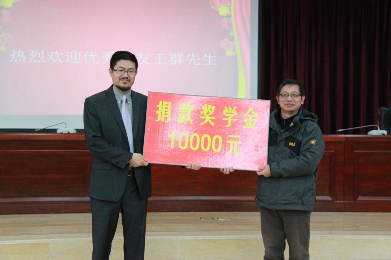 捐赠奖学金10000元,并结合自身经历做了报告。王群先生与大家分享了他在加拿大的经历并对日本a片