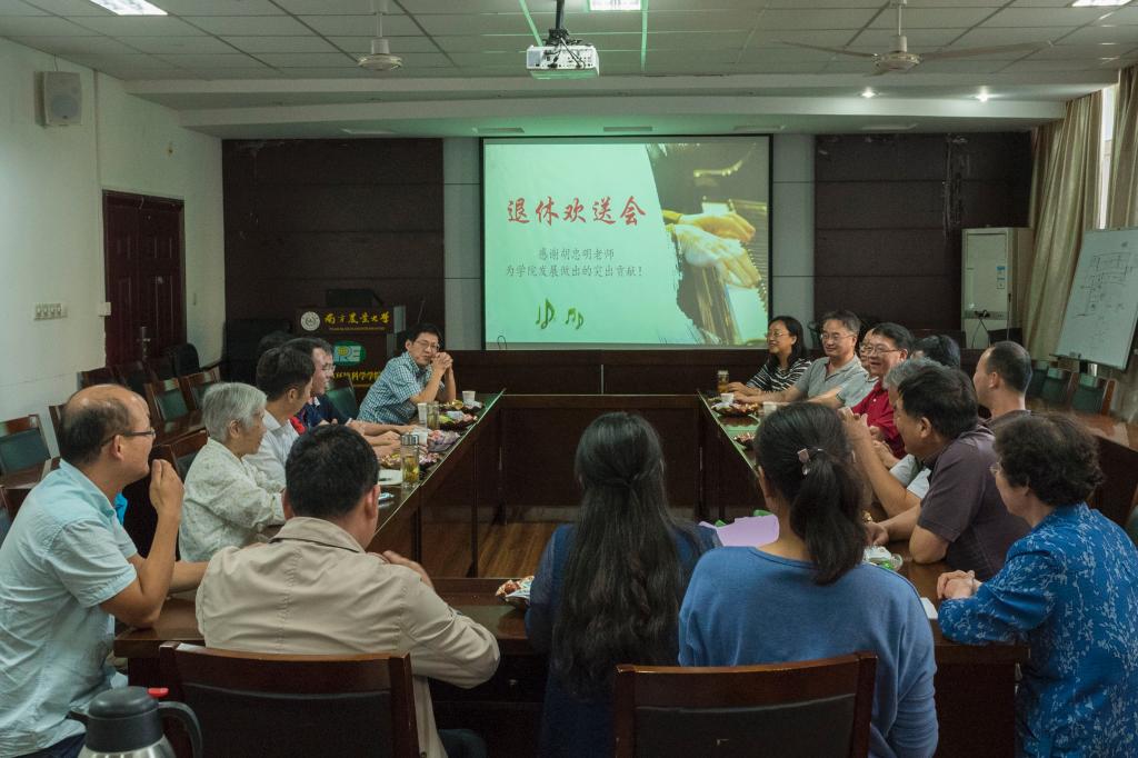 欢送会在欢声笑语中进行,胡忠明老师回忆起从前,讲自己如何与环境专业结缘,又是如何从北师大的本科到南京大学读研再到南农教学。胡忠明老师表示,南农对自己影响很大,南农也是实现自己从小以来教师梦的主要平台。接着胡忠明老师就自己在南农的科研工作、学生工作、教学工作、社会工作四个方面做出总结,他表示,自己在学生工作中基本做到了与同学融洽相处;在教学工作中为日本a片