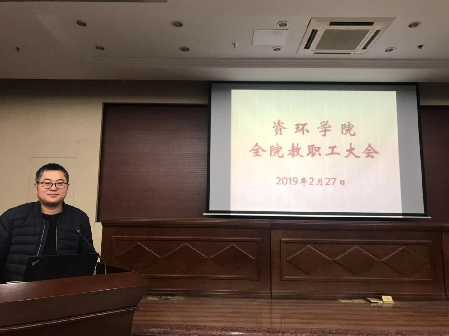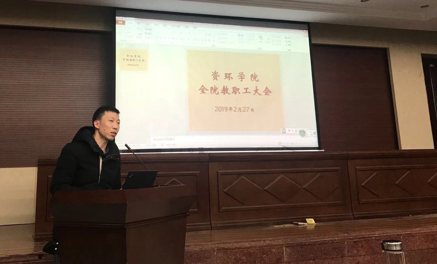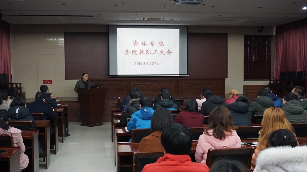 邹建文向大家介绍了2019年度上半年学院工作打算。他提出“以农业资源与环境世界一流学科建设统揽全局,多学科融合发展为主线,高水平师资队伍和科研创新为重点,平台和基地建设为支撑,通过科教融合实现一流学科培养一流人才的目标”的工作思路。他梳理了学院新学期的十项重点工作,强调传承诚朴勤仁的南农品格,弘扬开拓创新的资环精神。
