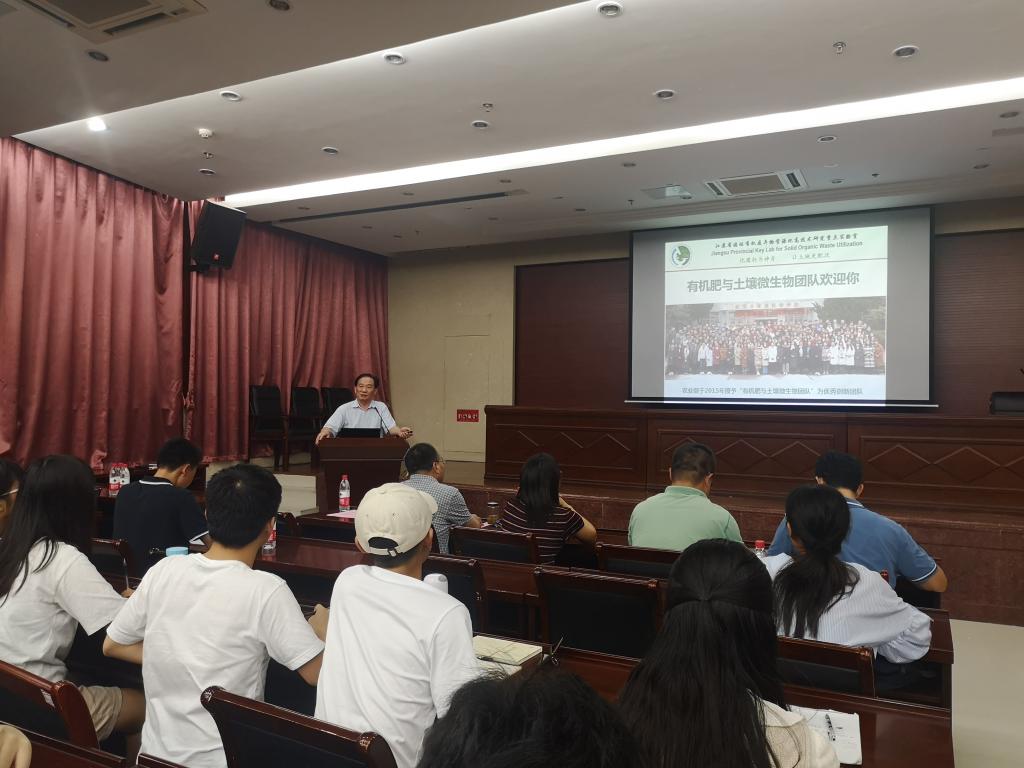 ,同时国家政策和时代要求,向同学们提出要做有理想有担当的 当代青年,邹建文结合自身经历鼓励同学们冲刺更高的人生阶段,发言引起同学们的强烈共鸣。辅导员王未未老师结合近几年的学校政策,为大家介绍了关注度比较高的加分规则。各课题组代表也以PPT展示的形式向大四的同学们介绍了自己的实验室,他们分别是:植物营养与肥料学系沈其荣教授、郭世伟教授,环境科学与工程系研究生代表,土壤与生态学系刘满强教授,植物营养与肥料学系董彩霞教授,生态学系代表张艺,植物营养与肥料学系范晓荣教授,土壤学系程琨副教授。各位老师及代表依次向同学们介绍各系的历史、科研情况、优势研究方向等,加深了同学们对学院和专业的认识。会议最后, 张旭辉就保研考研问题跟同学们进行了交流,为各位同学解疑答惑。