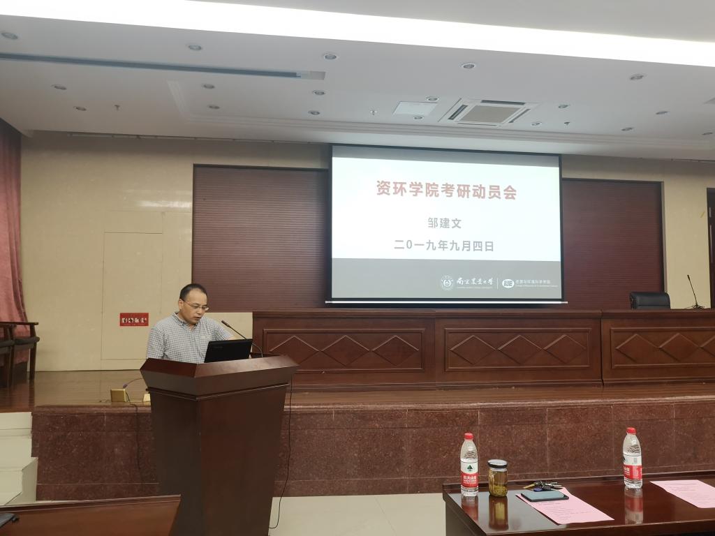 在一楼报告厅举行“2019级秋季学期保研考研”动员大会。此次会议由张旭辉副教授主持,资环院院长、各课题组代表、辅导员、本科教务秘书及2016级本科生出席参加。
