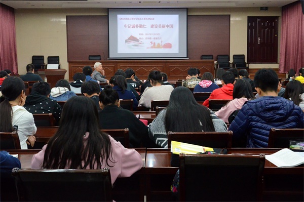 关工委“牢记诚朴勤人,建设美丽中国”系列活动在资环楼一楼报告厅举行,此次活动邀请了刘德辉教授主讲,院党委副书记崔春红老师、辅导员孙国成老师出席了本活动。