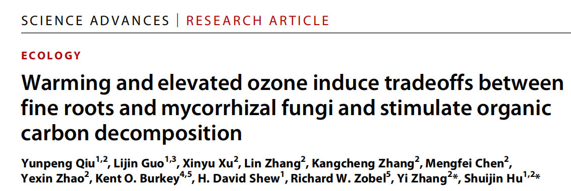 气候变暖通常会促进微生物活性,增加有机物分解,而高O3浓度会破坏植物气孔功能,减少植物光合作用,且迫使植物利用部分光合作用产物用于修复臭氧损害的细胞组织。因此,一般推测温度和O3浓度同时升高可能在促进土壤有机碳分解的同时减少光合产物向地下分配,从而限制陆地生态系统作为碳库的能力。然而,直接的实验证据甚少,相关的生态学机制更不清楚。