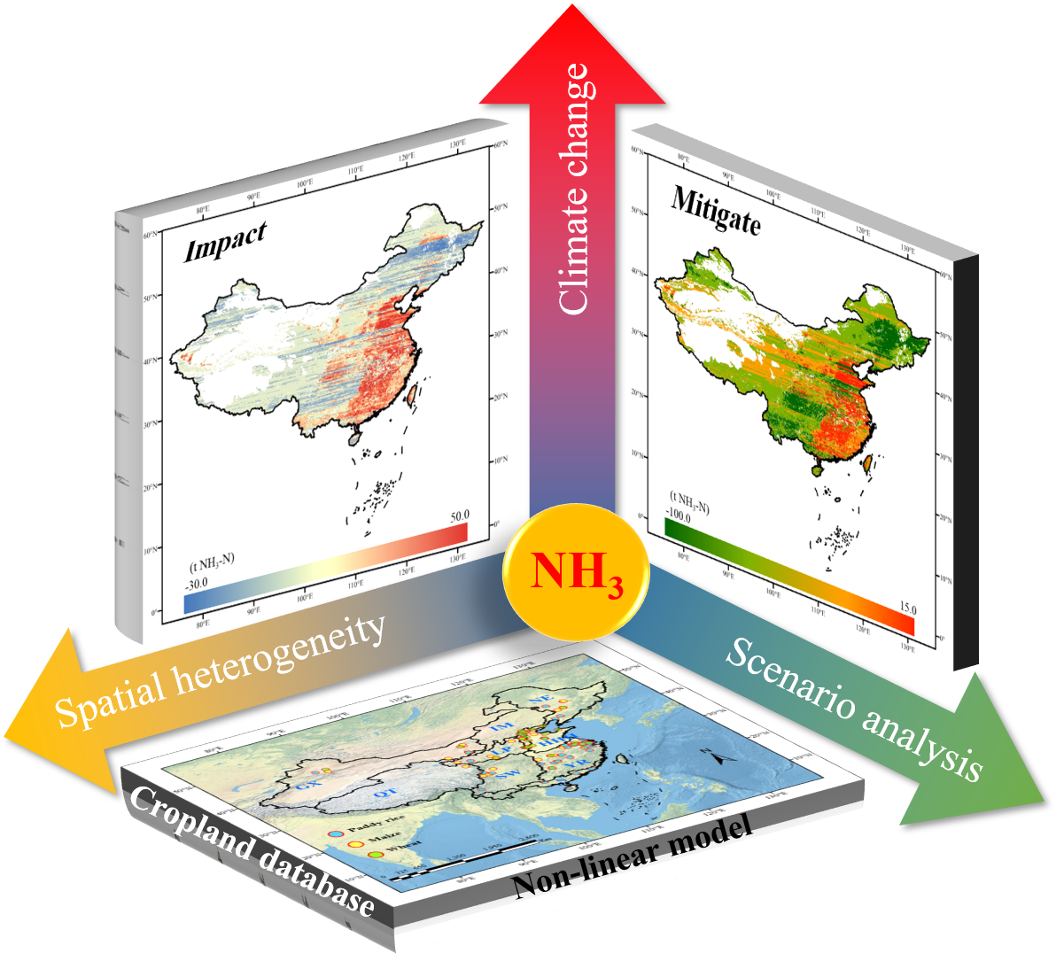 农田氨挥发是农田氮素的主要损失途径,是构成地球环境“活性氮”问题的重要过程。中国是世界上化肥施用量最高的国家,是全球关注的农田氨挥发热点地区。农田氨挥发受到土壤因素(氮形态、土壤结构、酸碱性等)、气候条件(环境温度、降雨、风速)以及农田管理措施等自然和人为活动的复杂影响与调控。科学评估气候变化下农田氨挥发的时空变化并辨识农田管理措施对氨挥发的减排效应面临极大挑战,这制约着中国活性氮排放减缓潜力的认识和农田氮素管理策略和技术选择。