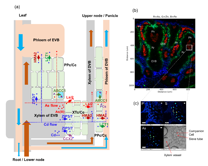 水稻节中元素分布及转运机制示意图