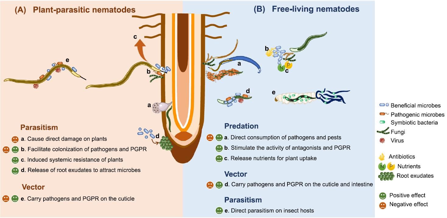 图2 植物寄生线虫和自由生活线虫对植物健康的影响