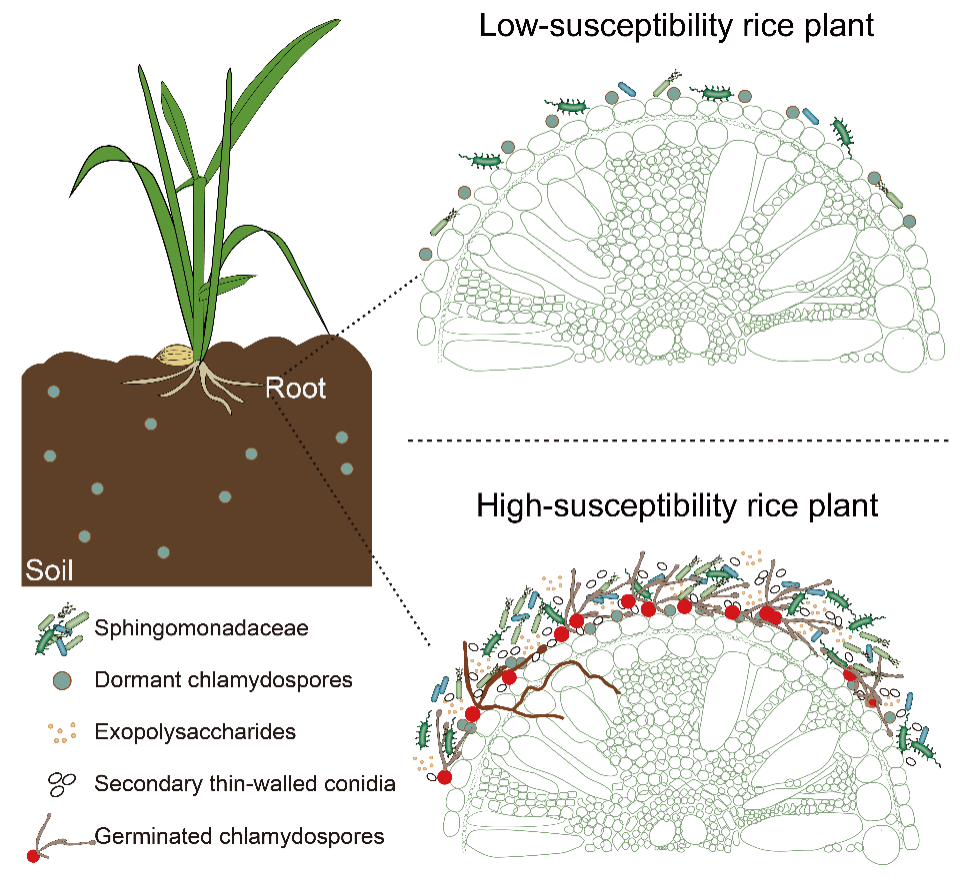 图1 稻曲病菌—鞘脂单胞菌科细菌在水稻根部互作模式